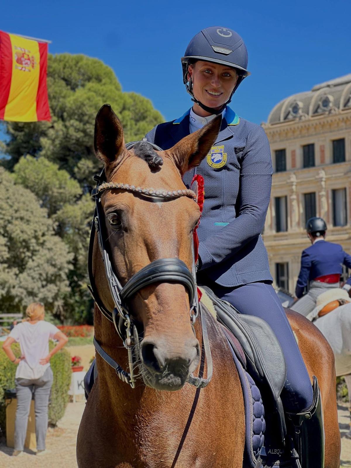 Inför speeden på söndagen låg jag trea totalt och såklart hade jag siktet inställt på att hålla den pallplatsen. Vi gav 110 % i speeden och igen var Jaguar heeeelt otrolig. Han är som en målsökande robot och jag får bara se till att hänga med i hans tempo. I flytta mugg höll han galopp på stället och så fort jag flyttat över och gav signal for han iväg mot nästa hinder. Man kan inte bli annat än glad när man rider den hästen i speed! I näst sista hindret, som var klockan i L, blev det dock lite överslag. Jag hade samma problem i Segovia året innan och rygga i största allmänhet har han kunnat bli något spänd i. Han ville iväg lite för fort och började nästan vända inne i klockan. Vi stötte ner två plankor och fick 10 sekunders pålägg. Helt sjukt att vi trots de extra sekunderna blev fyra i speeden och lyckades kliva upp till en andraplats som slutplacering. Hade vi inte rivit klockan hade vi vunnit speeden, men det hade inte varit tillräckligt för att ta förstaplatsen totalt. Det gjorde att jag inte behövde gräma mig över rivet, utan kunde njuta och vara så glad för vår andraplats. I Segovia blev vi också tvåa, men detta var ett helt annat motstånd. 25 ryttare från 9 olika nationer och flera med mästerskap i bagaget. Så otroligt tacksam för min fina underbara Jaguar som överträffar mina förväntningar gång på gång. Är så härligt att han tycker det är lika kul som jag att tävla (eller ÄNNU roligare) och funkar bra att resa med och allt det som är runt omkring. Så det gick lätt att rulla hem på måndagen och jag hoppas allt går i lås till nästa års VM!