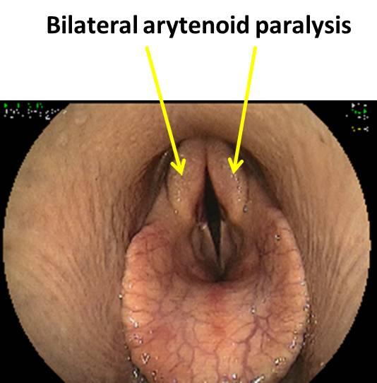 Det som händer är att Arybrosken (se bild Arytenoid Cartilage) faller samman och förhindrar ett gott luftflöde. Detta eftersom musklerna som ska hålla dem åt sidan har brutits ner och inte kan hålla tillbaka. Vanligast är att bara ena sidan faller ihop (oftast den vänstra) men man kan även ha en dubbelsidig förlamning.