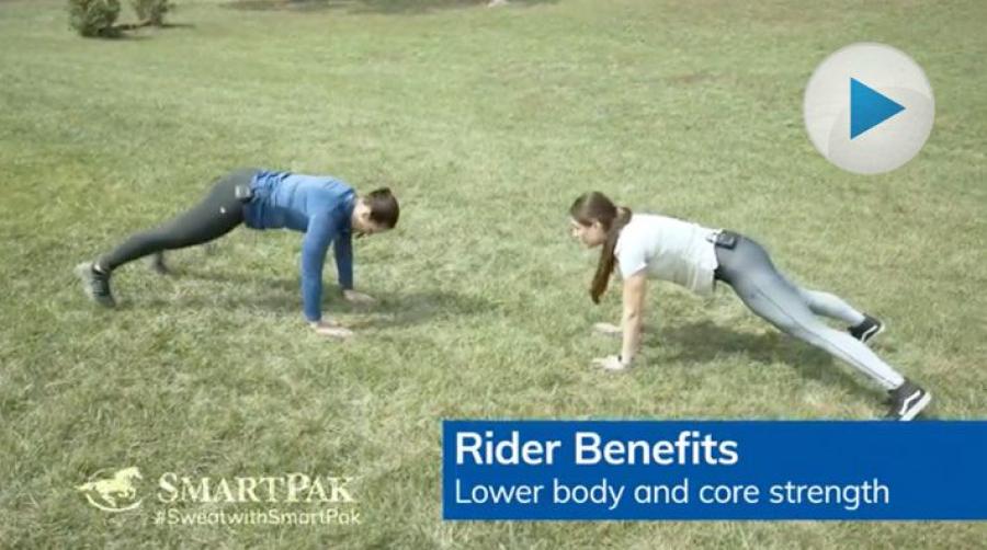 I detta klipp från SmartPak får vi ett träningsprogram för ryttaren där fokus ligger på att få upp pulsen. Alla övningar är anpassade för att förbättra ryttarens position i sadeln.