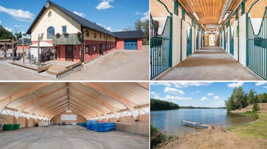 Med egen strandlinje, 22 boxar, ridhus i toppklass, ridbana, två lägenheter och 21 hektar mark har denna gården allt att önska. En perfekt gård för dig med egen verksamhet.