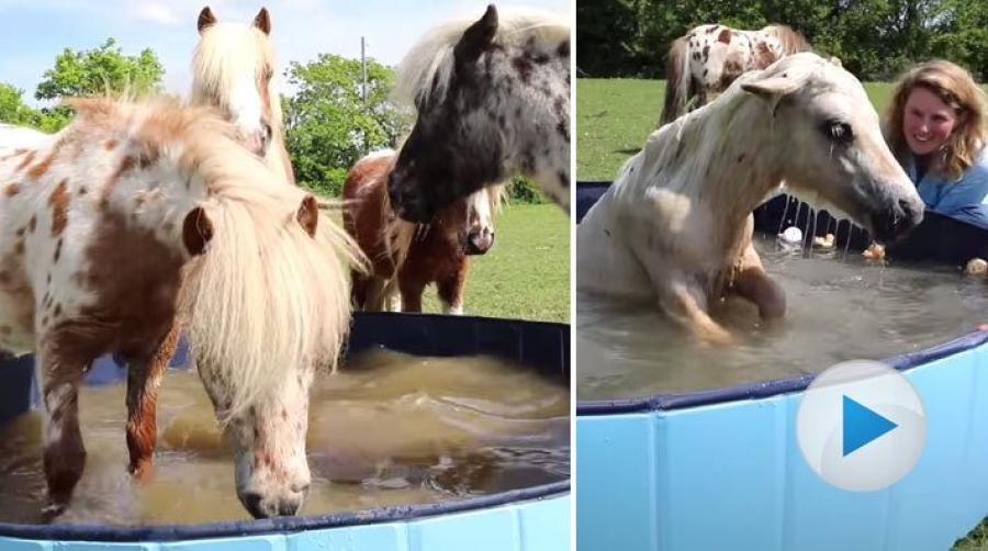 Brittiska hästtränaren Emma Massingale delar med sig av ett härligt klipp på sina miniponnyer. Eftersom det är ”lockdown” i Storbritannien har hon inte kunnat ta med dem till stranden vilket de annars älskar. I stället har hon köpt en plaskpool åt dem – och snacka om att vissa av ponnyerna njuter av sitt ”hemma-spa”!