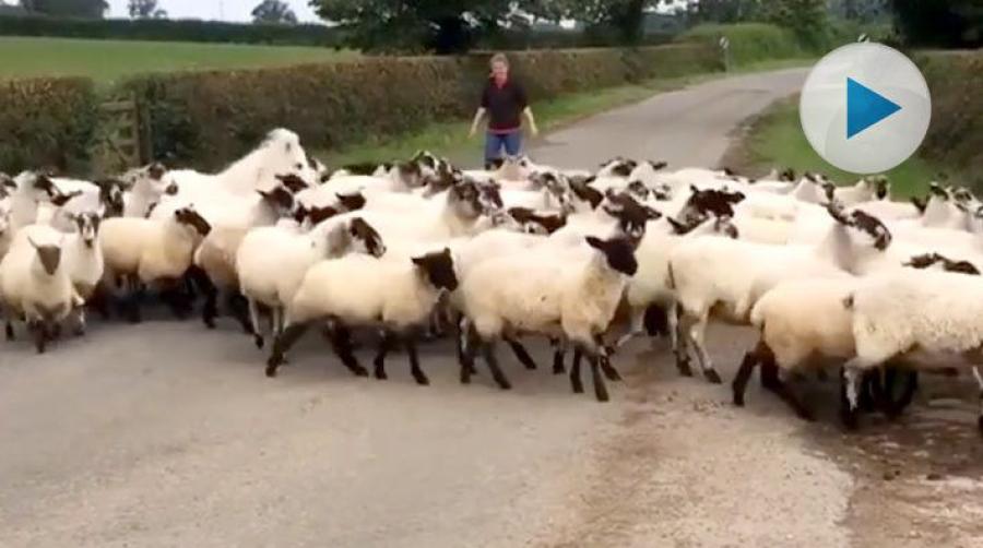 När personalen på March House Farm ska släppa in fåren från hagen följer alla snällt med. Men vänta nu, en av tackorna har liksom pannlugg och man i stället för burrig päls…
