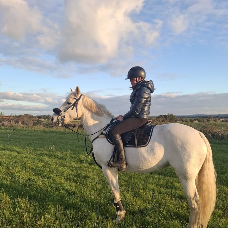 Okänd RasCindy ❤️ Ibland blir det inte alltid som man tänkt sig och det är nu med tårar i ögonen jag nu tagit det svåra beslutet att sälja Cindy. Cindy är en maxat D-ponny sto på 15 år. Hon är pigg, känslig och väldigt snäll i all hantering, såsom att borsta, klippa, bada osv. Hon är även snäll att rida men kräver en rutinerad och trygg ryttare som kan ge henne den tydlighet hon behöver. Hon älskar att rida ut och att hoppa men om man vill rida på bana eller i ridhus behöver man vara beredd att lägga tid, tålamod och arbete på henne. Med rätt person har Cindy all potential att bli en fantastisk ponny. Cindy har tidigare tränat och tävlat i hoppning upp till 110 cm med sin förra ryttare och skulle nog gärna fortsätta med hoppträningar och tävlingar ibland men i lugnare form. Hon är: ✅ Snäll i all hantering ✅ Van vid att klippas, badas, skos m.m. ✅ Pigg och glad att rida ut ✅ Väluppfostrad och snäll i stallet ⛔ Kan vara lite jobbig att lasta men står lugnt under transport ⛔ Cindy gillar inte ryttarbyten och säljs därför inte till ridskola. Jag har bara ägt Cindy i 5 månader men har tyvärr insett att vi inte riktigt vill samma sak. Hon förtjänar någon som har tid, tålamod och engagemang men ändå hålla det på den nivån hon vill. Full utrustning ingår i priset. Lånas inte ut och säljs inte på prov. Jag är mån om Cindy och att hon ska få rätt hem och har därför inte bråttom med försäljningen. Vid seriöst intresse hör av er till mig via pm eller +46768912349