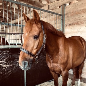 Schabrak i lila färg. Mycket gott skick. Stl Cob Bra kvalité och material. Ligger stilla under sadeln.