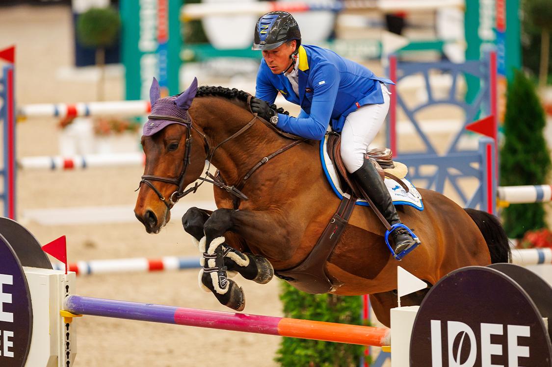Christian Ahlmanns 12-åriga hingst D’Aganix 2000 Z halkade vid urlastning inför helgens världscuptävlingar i Leipzig, Tyskland. Skadorna var så allvarliga att hingsten fick somna in.