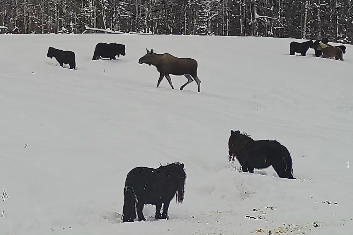 Upp till tio älgar åt gången kliver in i hagarna i Mullsjö och äter av hästarnas hö. För uppfödaren Anne Pagmar som har 100 shettisar på gården innebär det ökade kostnader – men också oväntat stöd från helt okända människor.