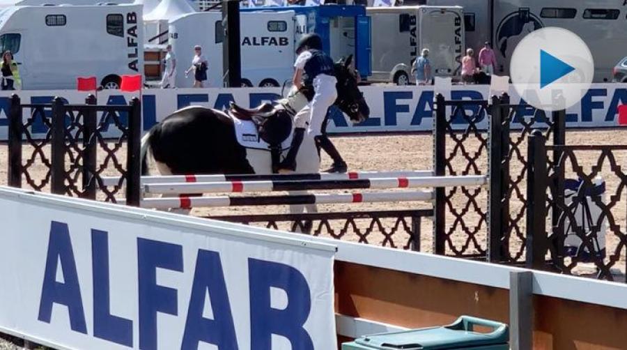 När tolvåriga Victor Åkerhielm skulle göra 1,10-debut vid helgens tävlingar på Sundbyholm höll det på att sluta med en avsittning vid hinder nummer fem. Men Victor rädddade upp det på allra snyggaste vis och när han styr Commander, född 2004 e. War Ruler, på hindret igen flyger de över.