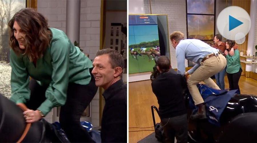 TV4 Nyhetsmorgons programledare Soraya och Martin får testa att rida ett galopplöp på en simulator i studion. Mjölksyran kommer snabbt, vem av de två bar snabbast i loppet, se själva i inslaget ovan.
