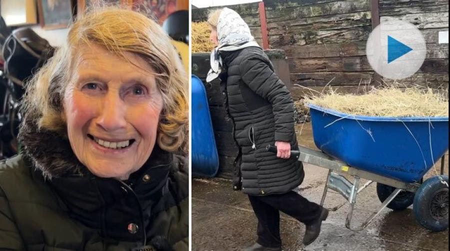 Se klippet: 90-åringen jobbar på ridskolan varje dag