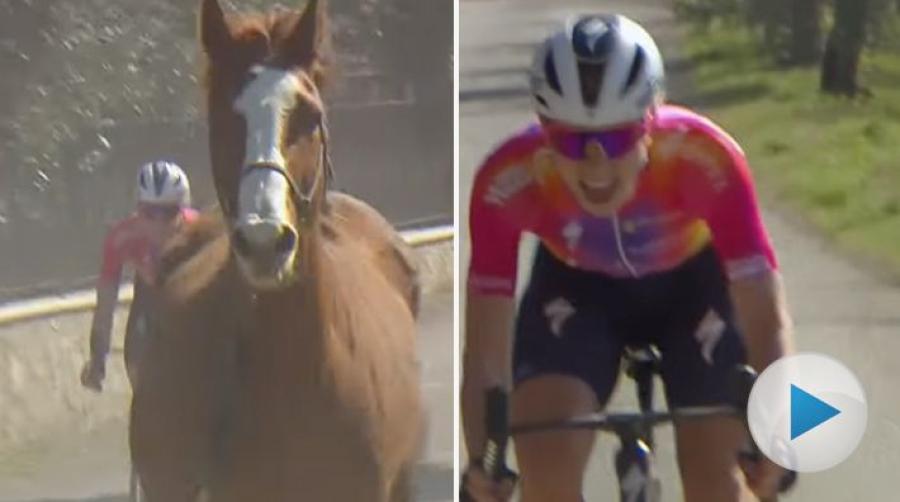När damernas Strade Bianche avgjordes i helgen i Italien kunde det ha slutat riktigt illa. Plötsligt kom en häst inrusande på vägen framför den nederländska cyklisten Demi Vollering. Demi skrek rakt ut och bromsade, som tur var gick allt bra och hon kunde fortsätta de sista kilometrarna till mål. Ingen cyklist kom till skada och trots att hon tappat några sekunder vann Demi loppet. Hästen ska ha ramlat i en kurva men var snabbt uppe på benen igen.