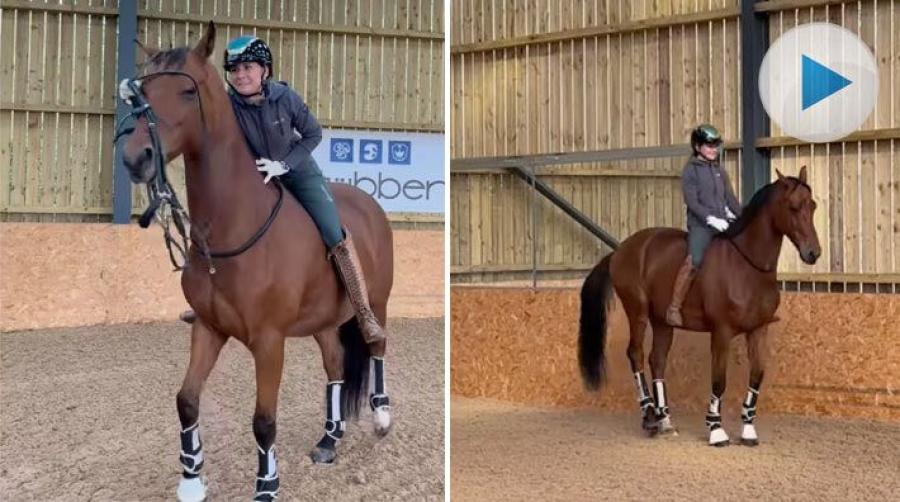 Dressyrryttaren Abi Lyle visar i ett klipp upp hur hon rider en av sina hästar barbacka med bara halsring, bland annat i passage. Det med en häst som enligt en veterinär var den farligaste häst hon hade hanterat och som hon aldrig ville se igen … Abi Lyle är en irländsk dressyrryttare baserad i England.