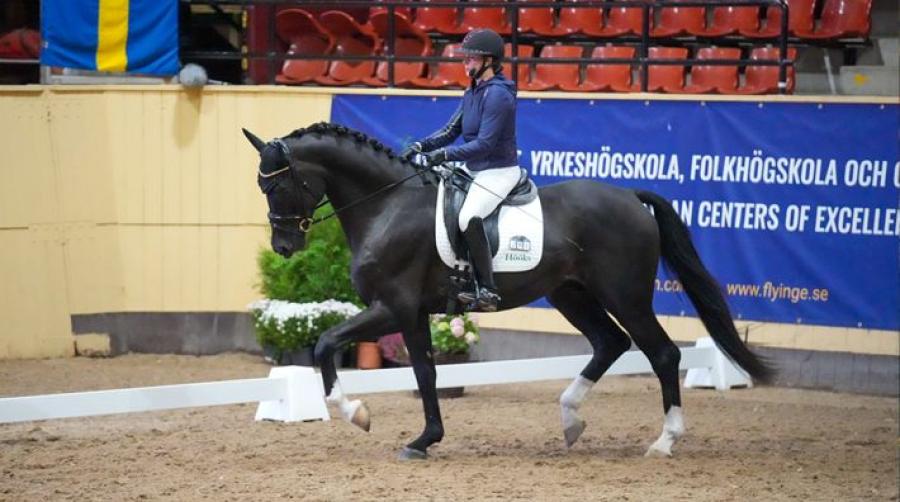 Skyline To B vann fyraåringarnas final under Breeders Trophy. Cathrine Laudrup-Dufour var testryttare för tredje gången och gav Carl Hedins hingst 10 och 9,9 i betyg. Det blev seger på 94,650 procent.