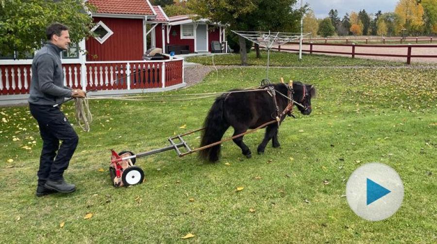 När shetlandsponnyn Ove ställer upp behövs ingen motordriven gräsklippare. Hästägare Peter Karlsson vill inspirera andra till att även små hästar kan användas till "riktiga jobb". Här delar de med sig av ett klipp där de visar upp vardagsarbetet: