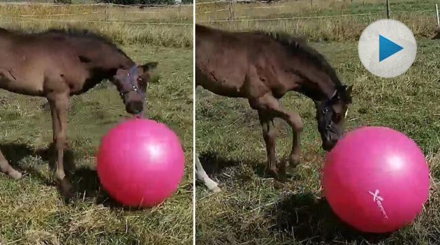 Det krävs inte så mycket för att det här lilla fölet (e. Mr Vain u. Prada Prescelly ue. Sandro Ace, äg/uppf. Helena Söderberg) ska bli på gott humör. En boll i hagen, och så är det roliga fixat.