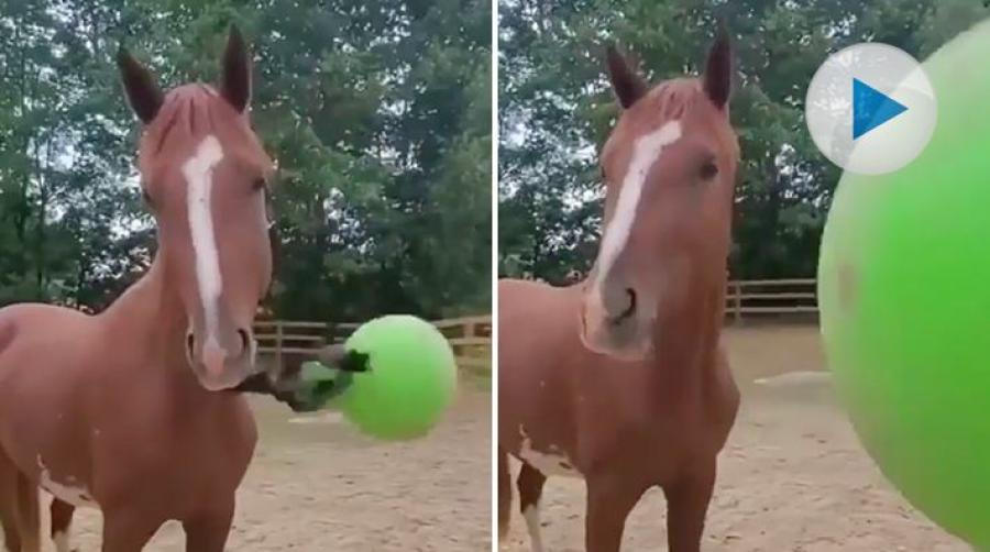 En häst som leker med en lekboll kan ju se hur kul ut som helst – men uppenbarligen gäller det att vara på sin vakt när en står i närheten.