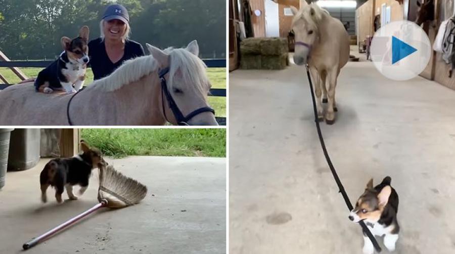 I stallet behöver hunden aldrig ha tråkigt. Det finns det mängder av vardagssysslor där det går att vara både hjälp- och stjälpreda – som att sopa golv, leda hästar, rida och förbereda foder. Bus med stallkatten är heller inte att förglömma!