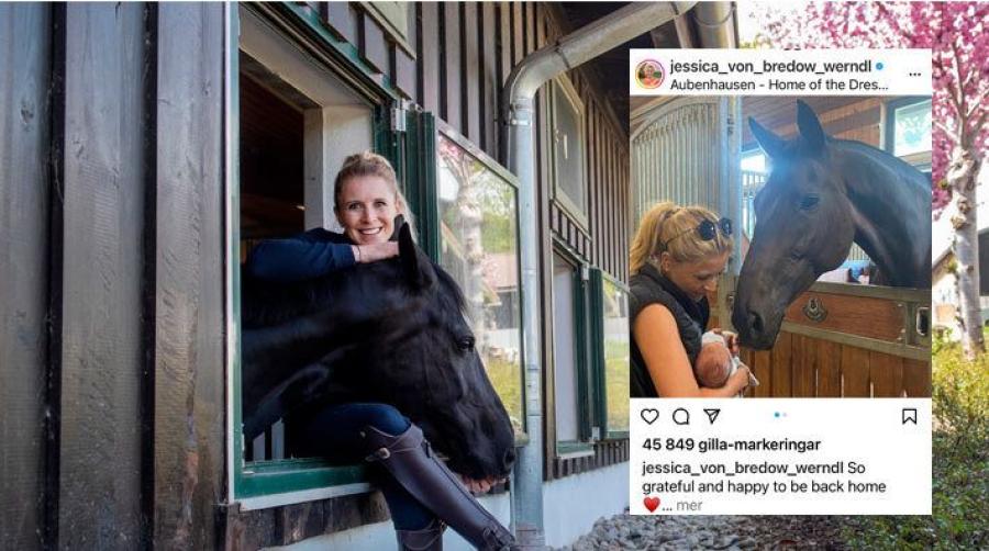 Jessica von Bredow-Werndl har blivit mamma. I ett inlägg på Instagram visar hon hur lilla dottern får bekanta sig med hästarna i stallet.