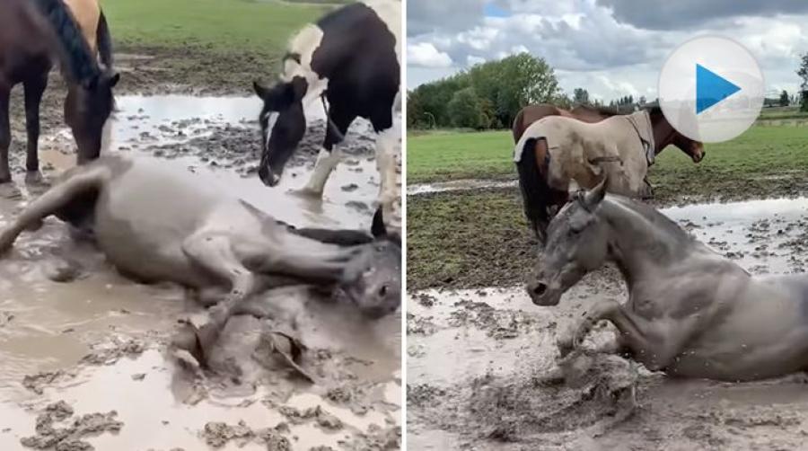 När sommarregnet skapar en swimmingpool i hagen gäller det att passa på att ta sig ett "dopp". Både avsvalkande och lortigt på samma gång, kan det bli bättre?