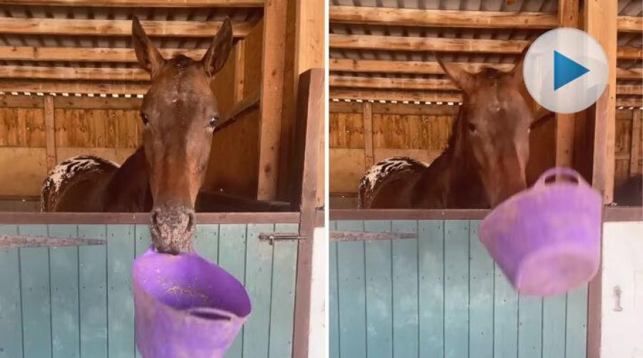 Har du också en häst som tydligt visar vad den vill? Här har vi någon som vill att frukosten skulle stått framdukad för längesedan.
