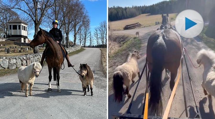 – De är i stort sätt alltid med. Curre kördes in för cirka 1,5 år sedan och tanken är att ponnyerna ska köras in till sommaren, säger Catarina Åberg som ägt Curre i tio år och lånar ponnyerna som sällskap.