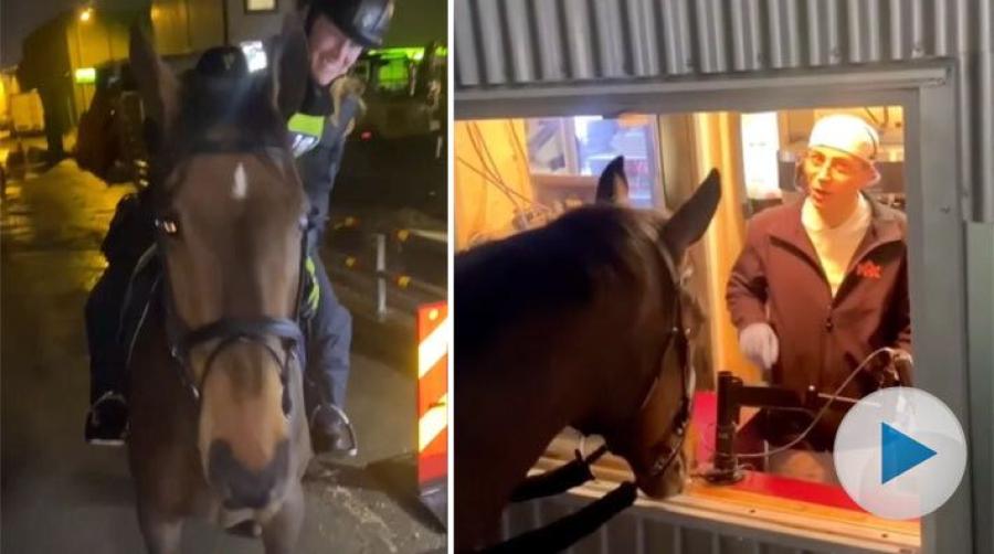 "Ride-thru" när polishästen Willy blir hungrig