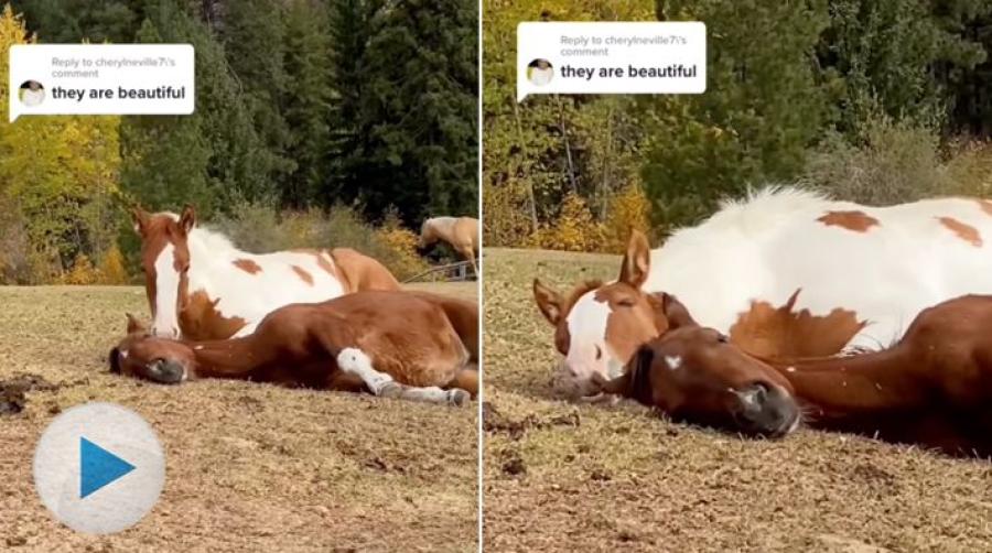 Vad är mysigare än att sova nära den man tycker om? Oavsett om det är din kompis, din partner eller ditt husdjur. Det verkar de här två hästarna hålla med om. De lägger sig tätt intill varandra och vilar. Brukar din häst göra likadant?