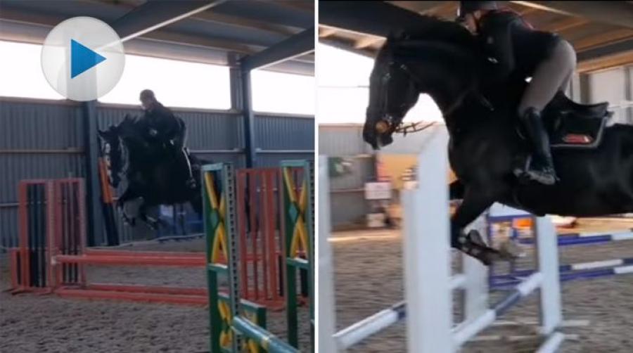 Cornelia Ryléns egna uppfödning, femårige Hidden Heliodor, "Helge", älskar att hoppa och det låter han alla få veta. Sätt på ljudet och se klippet!