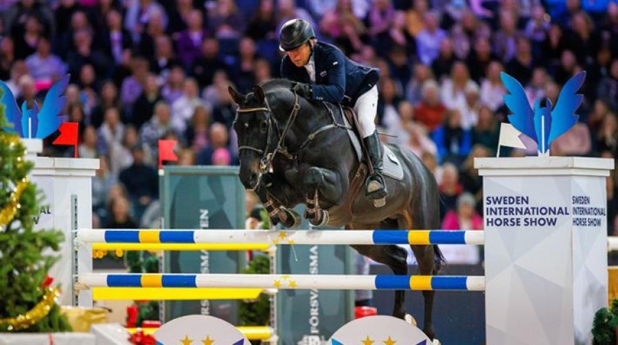 Flera svenska ryttare är på plats i Herning, Danmark, i helgen för att tävla. Under fredagen blev det svenskt längst upp på pallen, när Jens Fredricson vann den trestjärniga 1,50-klassen med Karmel van de Watering.