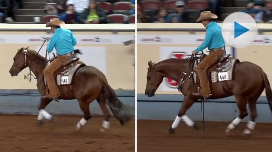 Med anledning av klippet där hästen tappar tränset mitt under pågående hopprunda, fick Hippson ett tips på en liknande händelse. Det här westernekipaget visar att lydnaden är det inga som helst fel på. När tränset går sönder fortsätter de bara som ingenting har hänt – och genomför resterande moment i halsring.