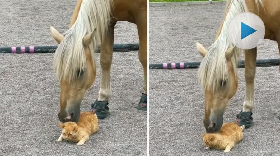 Som katt och häst – lika med bästa vänner. Hästen vet exakt rätta stället att klia bästa kattkompisen på.