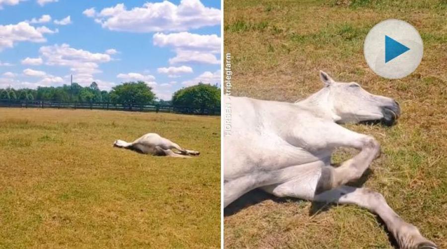 Den här hästen har verkligen somnat så där riktigt gott i solskenet. Och mattes rop drar helt oberört förbi. Så som man önskar att man kunde göra när väckarklockan ringer emellanåt.