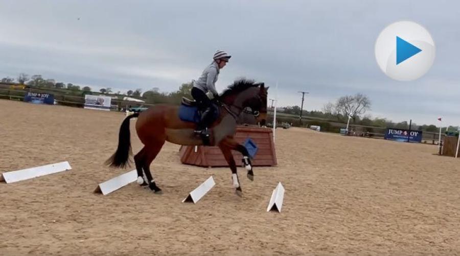Den här fyraåringen förstår inte riktigt det här med travbommar än. Bommar ska hoppas över, oavsett hur högt över marken de befinner sig.