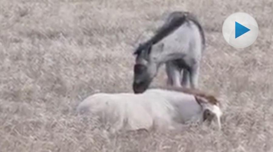 De här fölkompisarna har lite olika syn på huruvida det är dags att vakna eller inte. Hur mycket den vakna än försöker, verkar den andra vila väldigt sött i gräset.