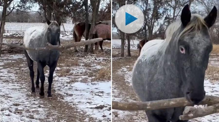 Man har ju hört talas om att hundar leker med pinnar, men att hästar gör det är desto ovanligare. Den här hästen letar gärna upp de största och finaste grenarna som han kan bära för att stolt visa upp dem för nära och kära.