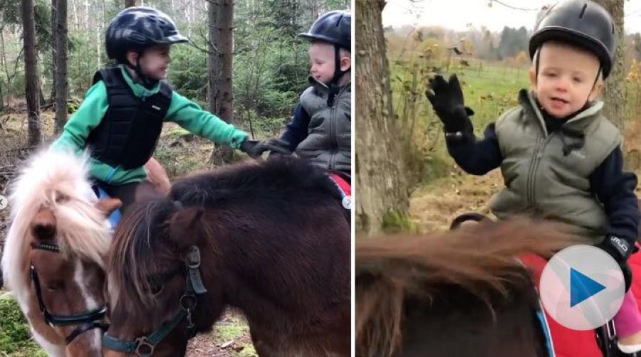 Jenny Johnsson delar med sig av ett härligt inlägg på Instagram med bröderna Tage och Titus som båda älskar att vara med hästarna. Tvååriga Titus har redan fått bra balans på hästryggen. Tage tar hand om skötseln av ponnyn inför ridpasset.