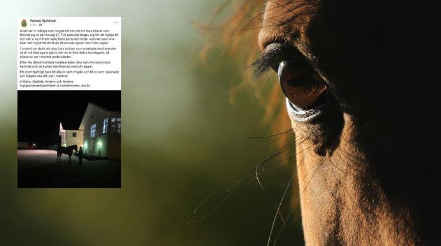 Sent på söndagskvällen fick polisen i Borås rycka ut för att ta hand om tre hästar på rymmen. Det hela inträffade vid länsväg 27 och med hjälp från allmänheten kunde hästarna fångas in och ägarna hittas.