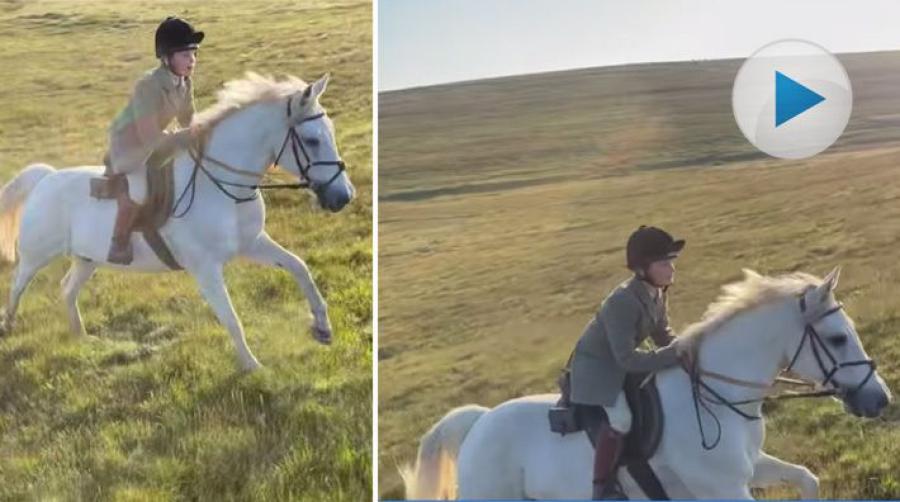 Har ni också njutit av fina sensommardagar? Den här unga ryttaren gör det på bästa sätt – genom en fartfylld galopp på sin ponny med en fantastisk kuliss i bakgrunden.
