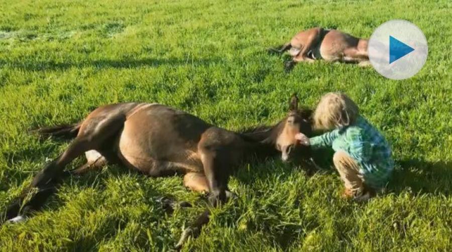 Den här lilla pojken klappar försiktigt fölet medan mamma håller sig i bakgrunden och ger råd. Visst är det härligt att se att ängarna fortfarande är gröna. För många av oss väntar snart månader av lera.