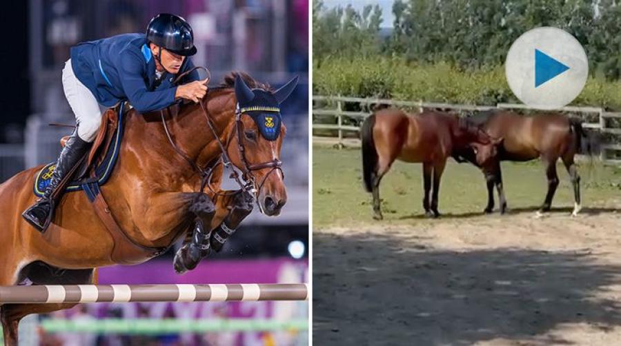 Borta bra men hemma bäst! Efter att ha hoppat hem ett OS-silver och ett OS-guld med Peder Fredricson i Tokyo, är All In hemma i hagen på Grevlunda igen. Nog ser han ut att njuta av att vara återförenad med sin hagkompis Flecu?