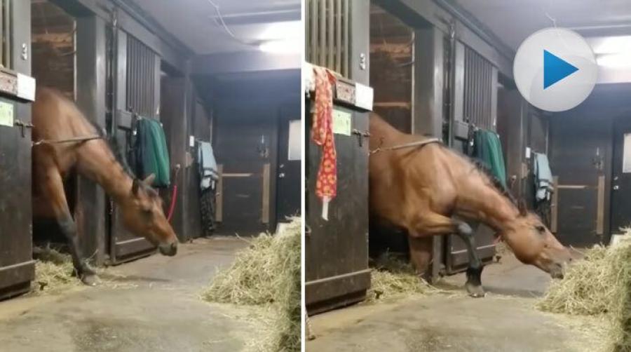 Hur är det man säger … gräset är alltid grönare på andra sidan staketet. Samma gäller för den torkade varianten, alltid godare utanför boxen. Så den här kreativa hästen snor åt sig lite när den tror att ingen ser.