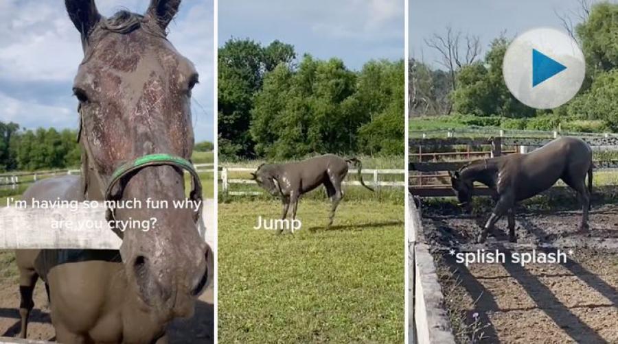 Sydney Neilly har en häst som verkligen vet av att njuta av livet. Hästen "Tomas" är både badsugen, har spring i benen och verkar hur nöjd som helst. Ägaren? Inte så nöjd. Ha en härlig helg!