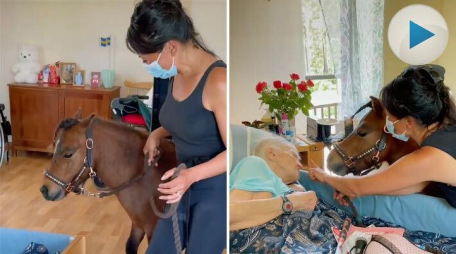 Evelyn Banffy och lilla ponnyn Akilles är på besök på ett äldreboende. Akilles visar upp såväl danssteg som att han kan apport. Men kanske allra mest uppskattat ändå är att han kommer riktigt nära och låter sig bli klappad.