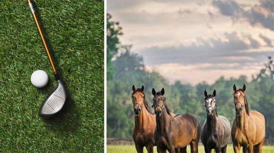 Prickskytte mot hästar i hage med golfbollar