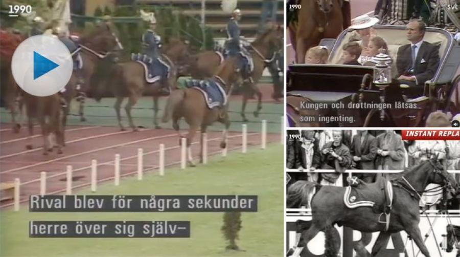 Flera av världens bästa ryttare är på plats i Stockholm i helgen för att tävla på Stadion. Stora tävlingar var det även där 1990 under ryttar-VM. Men mitt under invigningen kom en av paradhästarna lös. Hästen Rival galopperade och visade upp sig för kungafamiljen. Hans ryttare är ödmjuk inför händelsen, vilket svt_hastar visar i klippet ovan.