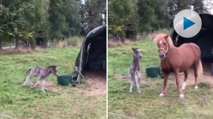 Det här fölet verkar ha en räv bakom varje öra. Busa med mamma och gömma sig bakom vindskyddet är för dagen favoritleken. Det busiga fölet ägs av Chelsea Borell som la upp klippet på Tik-Tok där det snabbt blev viralt.