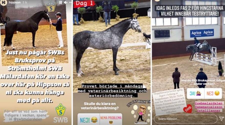 Bruksprovet pågår för fullt på Strömsholm denna veckan, med närmare 70 deltagande hingstar. I år är provet publikfritt på grund av pandemin. Om du är nyfiken på vad som händer och hur det går till kan du följa med SWB Mälardalen som under två dagar gästar Hippsons Instagramkonto.