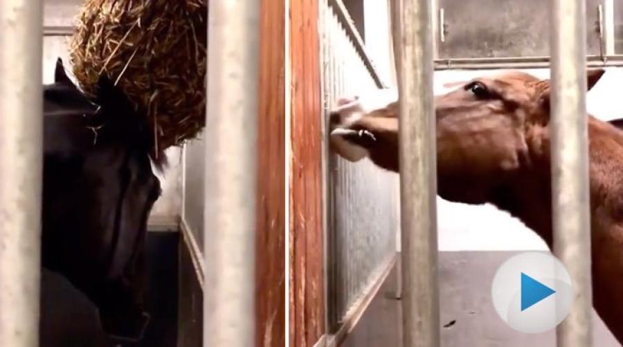 Hästen Graal, "Grålle", brukar få lite extra hö och halm i ett hönät på kvällarna. Men han är inte själv så intresserad av maten, så han delar gärna med sig till sin boxgranne Inka.