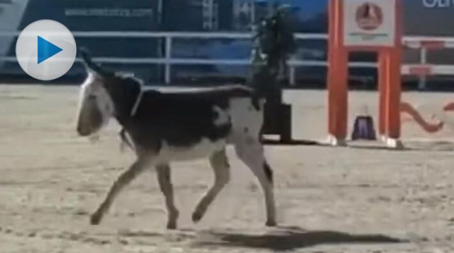 Vid en hopptävling i Spanien tidigare i år smög sig en liten oinbjuden gäst in på banan. Kanske hade han också en dröm om att bli hopphäst en vacker dag? Efter lite bus och några varv i galopp kunde åsnan fångas in och ledas ut från banan.