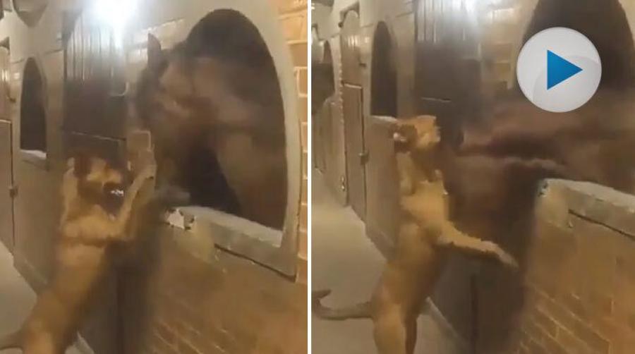 Den här hunden har verkligen fattat tycke för den stora hästen. Dessutom har han lärt sig att klappa hästen varsamt och lugnt i stallet. Kolla in det söta klippet!