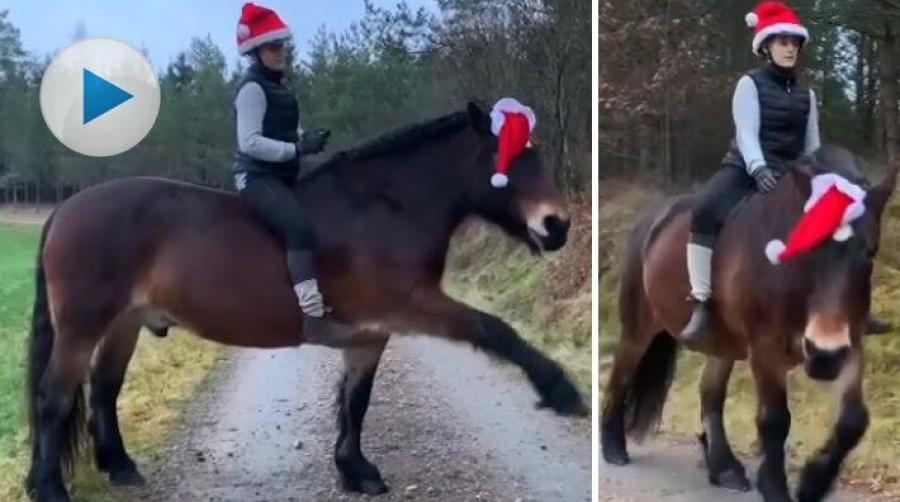 – Oden är min allra första häst som jag har tillsammans med min morfar. Han är en nordsvensk brukshäst född 2004 och vi har haft honom sedan han var ett år. Under åren har vi bland annat uppträtt och visat trick på Friends Arena vid SIHS och på Eurohorse i samband med GHS. Oden körs mest till vardags, men tar gärna en ridtur då och då eller showar loss med sina trick. Hoppas ni gillar vår julhälsning!, säger Jessica.